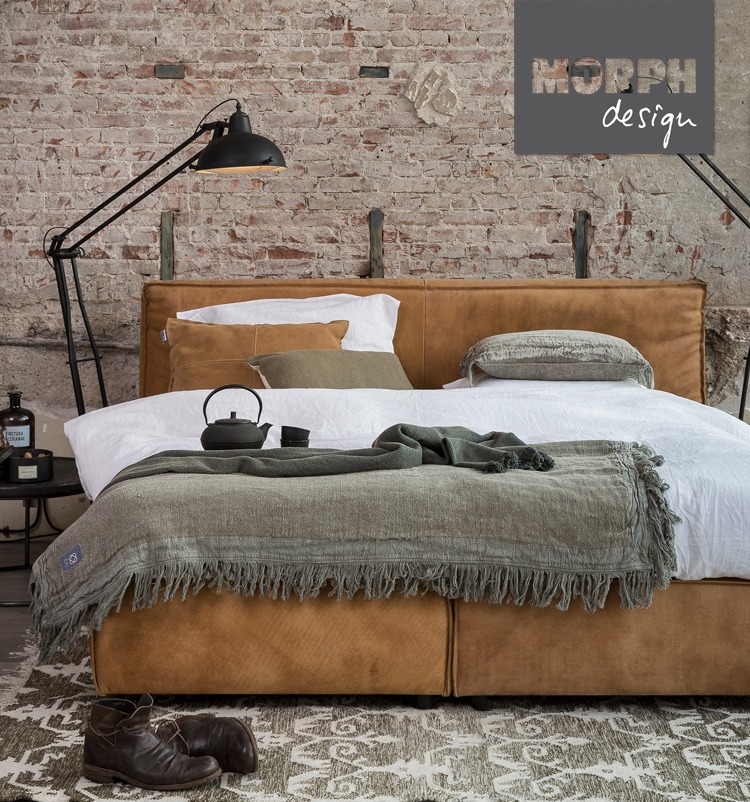 Ruig, vintage leer was het uitgangspunt van Morph Brût. De doorleefde huiden vertellen hun eigen verhaal en maken van ieder bed een uniek stuk. Onafgewerkte randen en grove stiksels, ruwe bolster, blanke pit.
