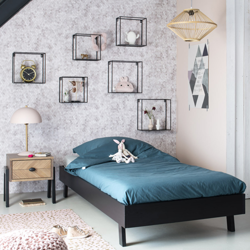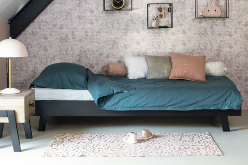 Voor wie op zoek is naar een strak bed zonder poespas, maar wel met nét dat beetje extra. Ledikant Harper is zwart, strak en robuust: eenvoud zonder saai te worden. Schuin geplaatste stoere poten maken het plaatje compleet. Verkrijgbaar in de breedtemaat 90 en 120 cm. Bij het ledikant zijn een nachtkastje, bureau en verschillende kledingkasten verkrijgbaar waarvan de fronten zijn uitgevoerd in een warme tint hout met visgraatmotief.