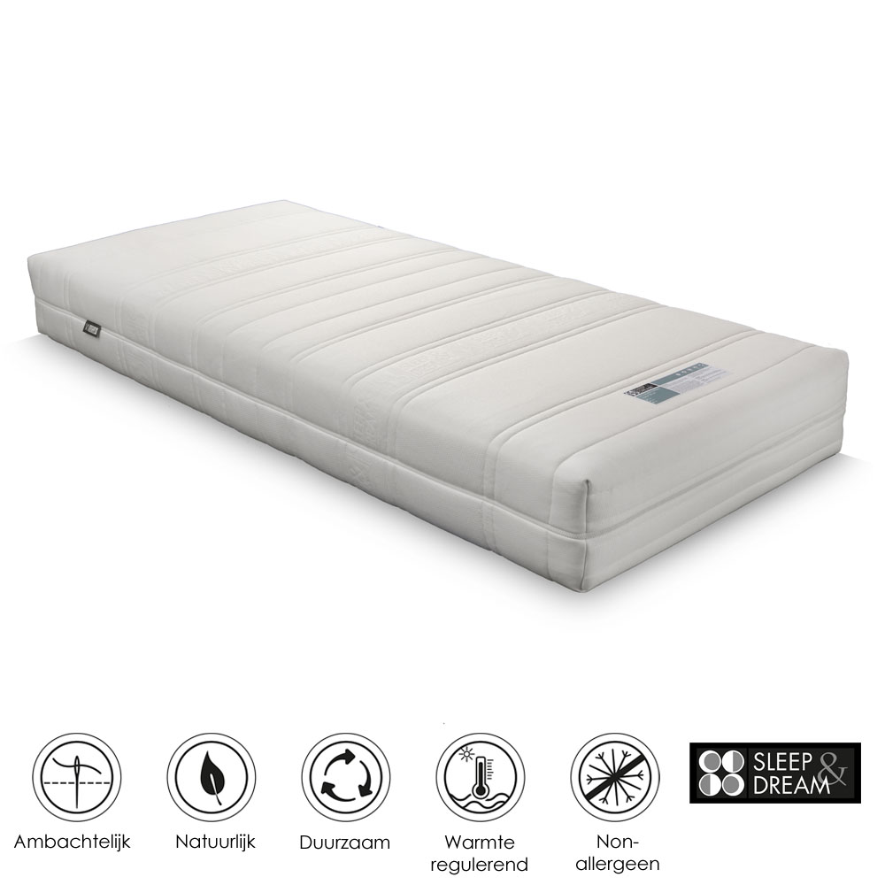 De matrashoes bestaat uit 28% GOTS katoen, 39% katoen en 33% lyocell en is rondom voorzien van de best geselecteerde bamboe, GOTS zijde, alpaca, Nieuw-Zeelandse GOTS lamswol en KbT Merinowol (totaal ca. 750 gr/m²). De hoes is voorzien van Purotex voor het op een natuurlijke wijze opruimen van allergenen, en Adaptive voor een optimale vochtafvoer en warmteregulatie. De afneembare hoes is chemisch te reinigen onder code P. De matras is geschikt voor alle goed ventilerende (verstelbare) matrasdragers.
