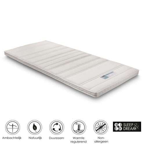 De kern van 7.5 cm natuurlatex heeft een uitmuntend veerkarakter en door zijn open celstructuur een natuurlijk vochtregulerend vermogen en een comfortabele ondersteuning. De dekmatras is voorzien van heup- en schoudercomfortzones.